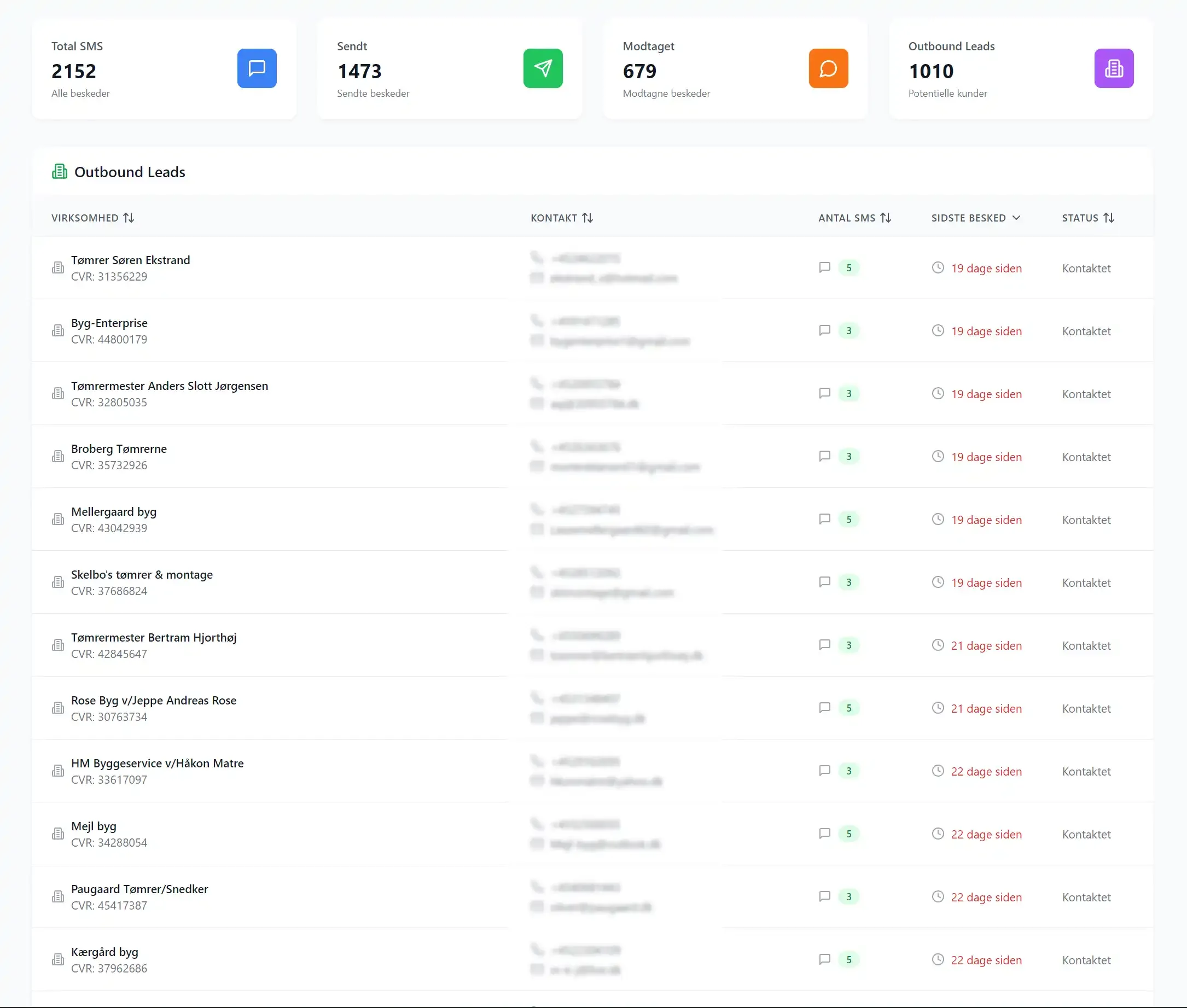 Alle leads, samtaler og kontaktinformationer gemmes i Supabase (PostgreSQL). Det betyder, at virksomheden ikke bare får en SMS-assistent, de får også et CRM-fundament. Hvem har skrevet, hvad blev der talt om, og hvornår er næste aftale? Alt ligger samlet og søgbart.
