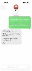 1. For kunder og leads: De kan få svar, stille spørgsmål og booke tider direkte i ejerens kalender.